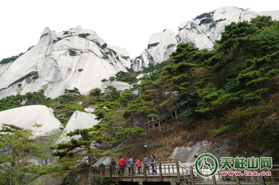 說好只是散心,并不帶隊,所以輕松多了,目光可以隨著上山的松鼠,一蹦一躍,消失在松林里;心情可以隨著剛探出頭的竹筍,往更高的竹節(jié)攀越。人是個善于調整精靈,心情也會陷入閑情的包容之城中,境由心生。置身天柱山之中,山的博大包容自然會緊緊相隨,導游嘴里的景觀,都如云層一一散淡,而我進入山中,是否要尋找李白、白居易、王安石、蘇東坡、黃庭堅等文學大家在此留下的足跡呢?還是要傾聽到他們在此留下的躉音?問題有點漂浮不定,反讓腳步更加殷實。景觀之中納入人文的元素,生命力自然會更長久。天柱山之前,也曾補過課,知道一點大家與天柱山的故事,如白居易留下了“天柱一峰擎日月,洞門千仞鎖云雷”。蘇東坡留下了“青山只在古城隅,萬里歸來卜筑初”。王安石留下了“野性堪如此,潛山歸去來”。公元前106年,漢武帝劉徹登臨天柱山封號“南岳”。還有,天柱山幾乎包羅了世界上所有花崗巖風景區(qū)的地貌景觀:奇峰、怪石、洞穴、峽谷等勝景。尤以花崗巖崩塌及堆壘景觀典型而堪稱世界一絕,成為國內同類景觀的代表而冠名為“中國天柱山型花崗巖地貌”。文景相宜,不僅是一種厚重體現,更是一種自然的厚待。這種厚實如山下的三祖禪寺,一花一世界,一葉一如來,耳聽松濤,無窮般若心自在,俯視滾滾紅塵的萬千生命。當心寧靜到聽禪物語,聆聽花開之時,就可以封塵所有的記憶,撇開所有的糾纏,拋開所有的紛擾,一個人,一座山,足矣。