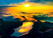 特色: 當(dāng)清晨的第一縷陽光灑向大地時,安徽天柱山便成了大自然的調(diào)色板,云朵像棉花一樣蓬松柔軟,彩霞似火焰一般激情熱烈。被金黃色或橙紅色包裹的奇峰怪石,尤顯壯麗、神秘,給予人美好與震撼,是攝影、繪畫、寫作的好場景,也是旅行、探險、戶外活動的好去處。(圖/張永富 文/章媛媛)